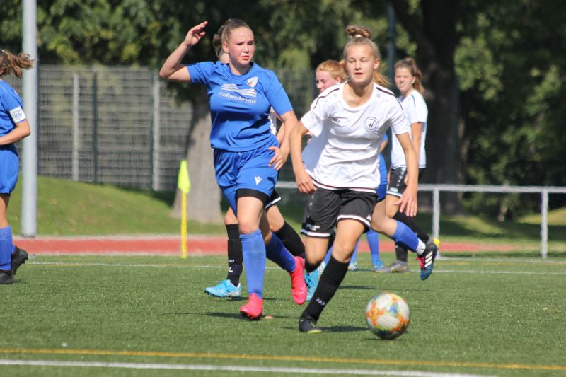 Pressing. Lea, Freya, Frauke und Liz liefen die Jenaer immer wieder an