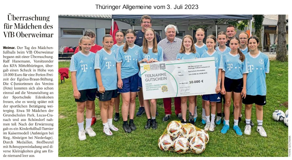 Gutschein der Egidius Braun Stiftung06.07.2023 Heute, zum Tag des Mädchenfussballs, erfolgte die