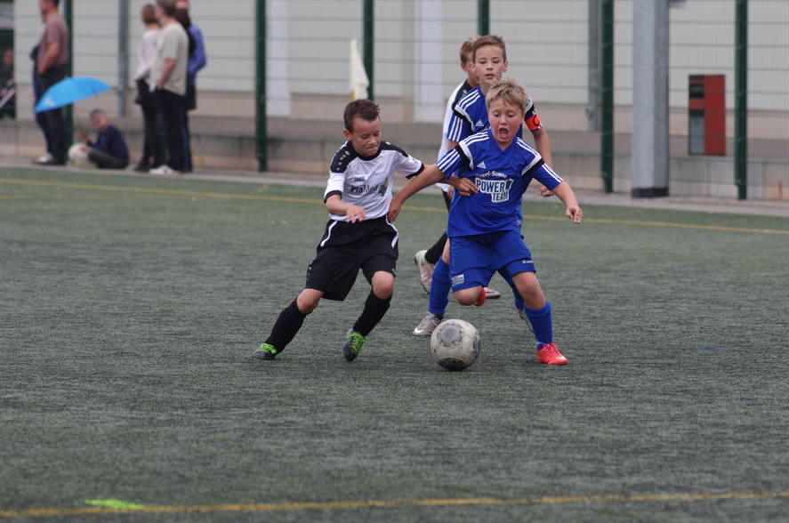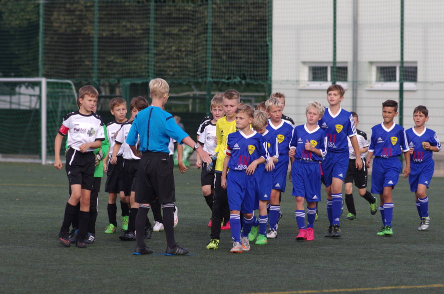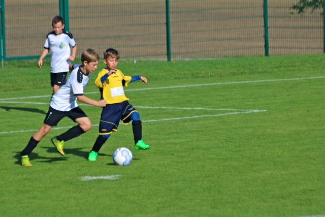 Nach dem verkorksten Saisonstart wollten wir es am 2.ten Spieltag besser machen. Das ist unseren Jungs ganz offensichtlich gelungen. Vom Anpfiff weg dominierten wir das Spiel und ließen kaum Chancen des Gegners zu. Durch Schnelle Balleroberung, sicheres Passspiel und selbstbewusste Auftreten zeigten unsere Jungs was in ihnen steckt. Die ersten paar Minuten brauchten wir noch etwas um mit dem Ball und dem Platz zu Recht zu kommen. Komisch, trainieren und spielen wir doch dort. Wir hatten zwar viel Ballbesitz und guten Zug zum Tor aber ein Tor wollte nicht fallen. Der Torwart hatte was dagegen. Wir sahen schöne Spielzüge aber ohne ein Tor wird es dann auch irgendwie langweilig…es wurde Zeit. Also das 1:0 markiert Johannes nach 10 min für uns, nach toller Vorarbeit von Thadeus. Der Bann war gebrochen und endlich gab’s was zu jubeln. Dann gab’s gleich einen Doppelschlag in der 11 min. Tore Nummer 2 und 3 schoss Lennard nach Vorlagen von Johannes. Die Kugel lief rund und der richtige Weg war gefunden. Die Jungs spielten jetzt so toll miteinander das wir durchaus noch einige Mal mehr Jubelten. Zwar nicht wegen geschossenen Toren aber wegen Schönspielerei und Spielverständniss. Das letzte Tor vor der Halbzeit schoss Johannes nach tollen Pass von Teve Turbo.