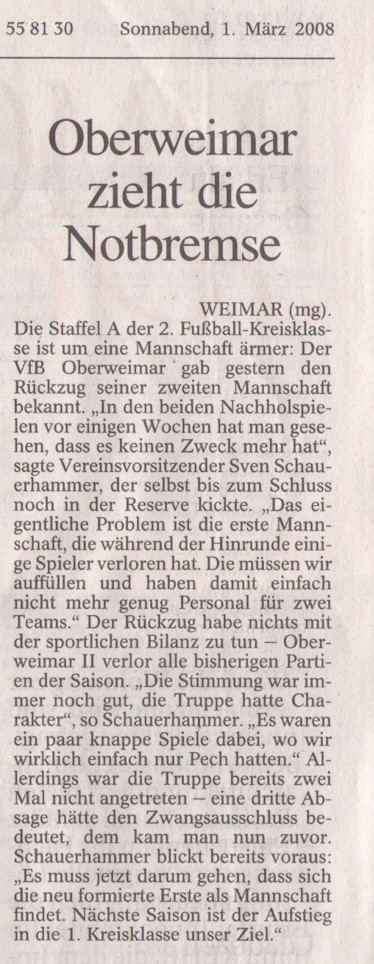 Der VfB Oberweimar meldet die 2. Herren vom Spielbetrieb ab!!16.02.2008 |