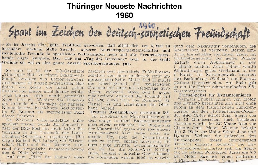 Unsere Pressearchiv: Sport im Zeichen der deutsch-sowjetischen Freundschaft (Thüringer Neueste Nachrichten 01.01.1960)