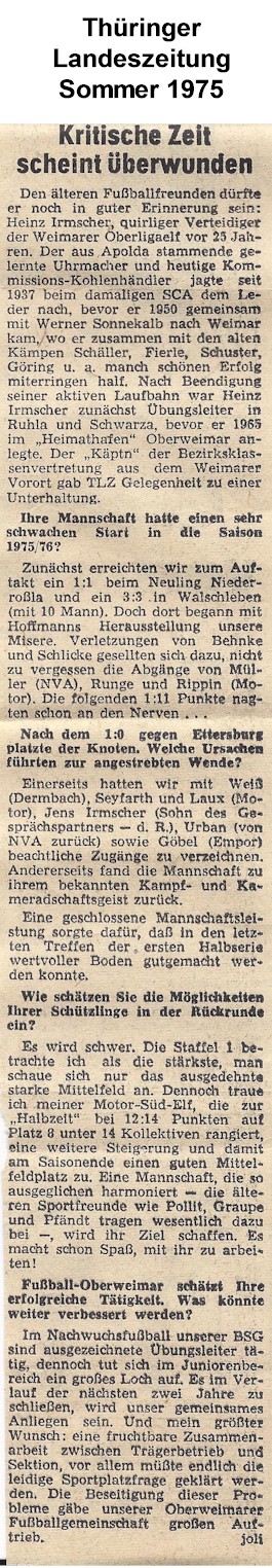 Unsere Pressearchiv: Kritische Zeit scheint überwunden (Thüringische Landeszeitung 01.09.1975)