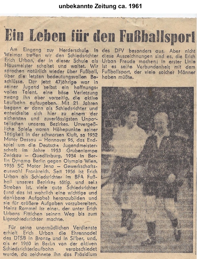 Erich Urban war als Schiedsrichter ein Vereinsmitglied der BSG Motos Süd Oberweimar.
