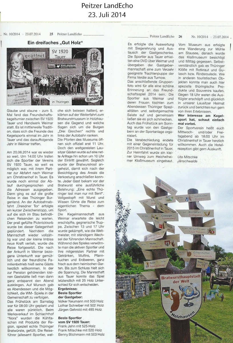 Unsere Pressearchiv: Ein dreifaches Gut Holz (Peitzer LandEcho 23.07.2014)