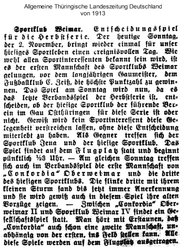 Unsere Pressearchiv: Concordia Oberweimar vs. SC Weimar (Allgemeine Thüringische Landeszeitung Deutschland 02.11.1913)