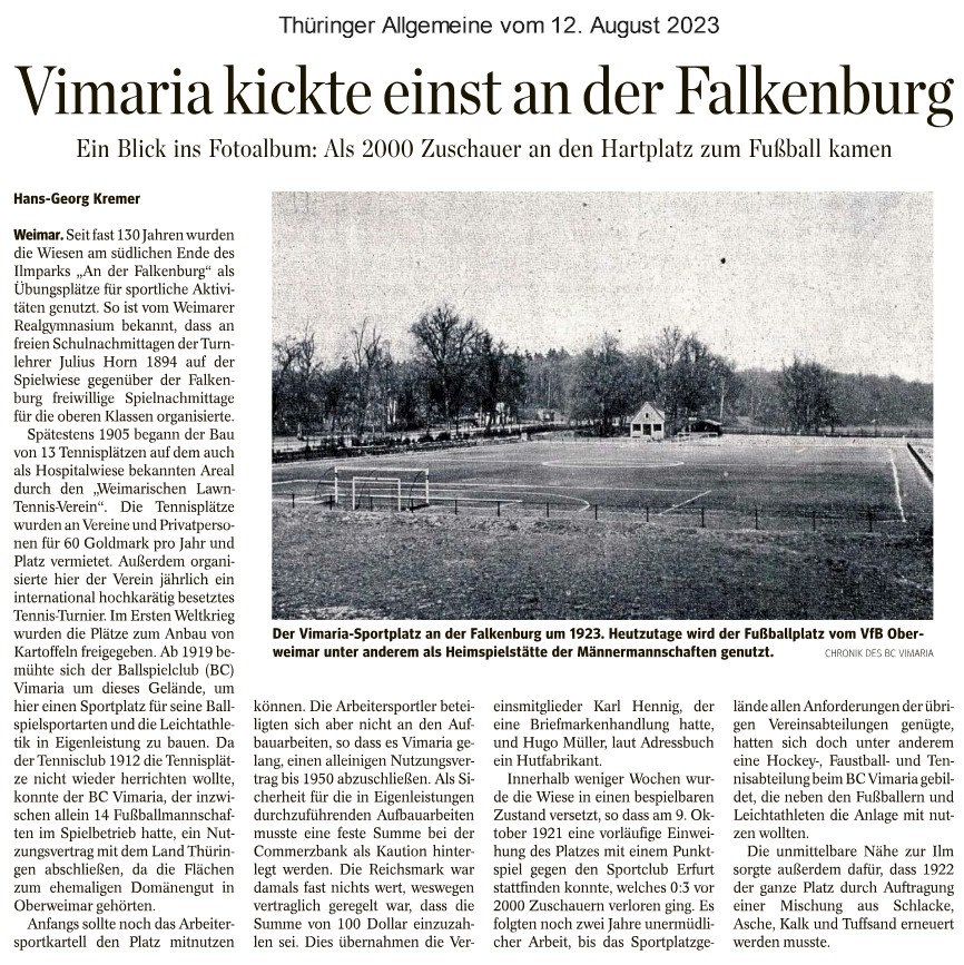 Unsere Pressearchiv: Vimaria kickte einst an der Falkenburg (Thüringer Allgemeine 12.08.2023)