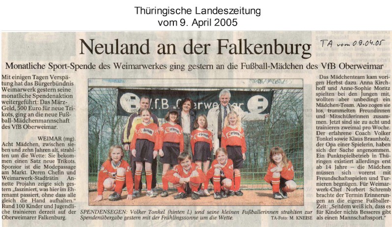 Unsere Pressearchiv: Neuland an der Falkenburg (Thüringische Landeszeitung 09.04.2005)