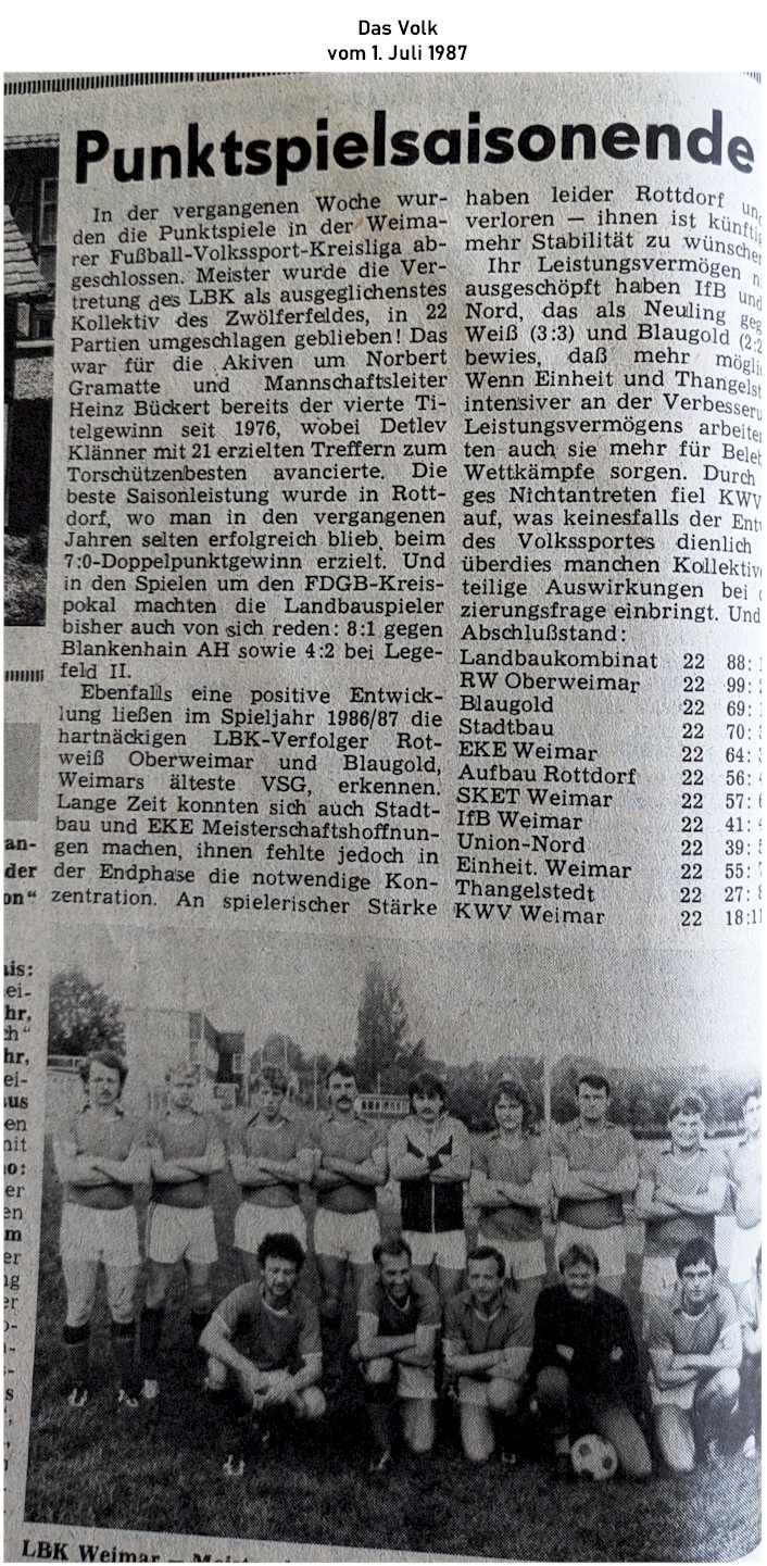 Unsere Pressearchiv: Punktspielwochenende Volkssport-Kreisliga (Das Volk 01.07.1987)