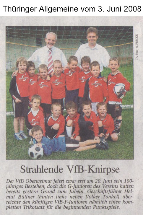 Unsere Pressearchiv: Strahlende VfB-Knirpse (Thüringer Allgemeine 03.06.2008)