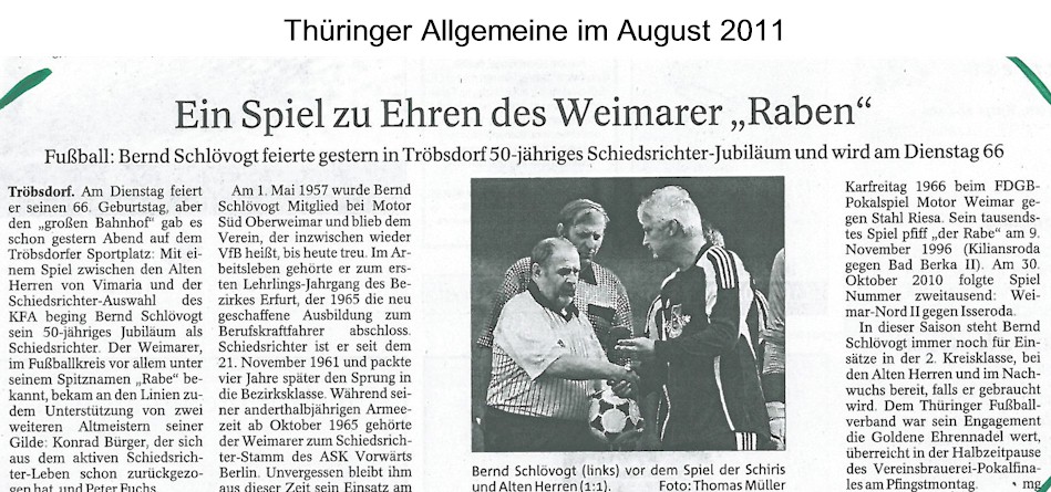 Unsere Pressearchiv: Ein Spiel zu Ehren des Weimarer Raben (Thüringer Allgemeine 01.08.2011)