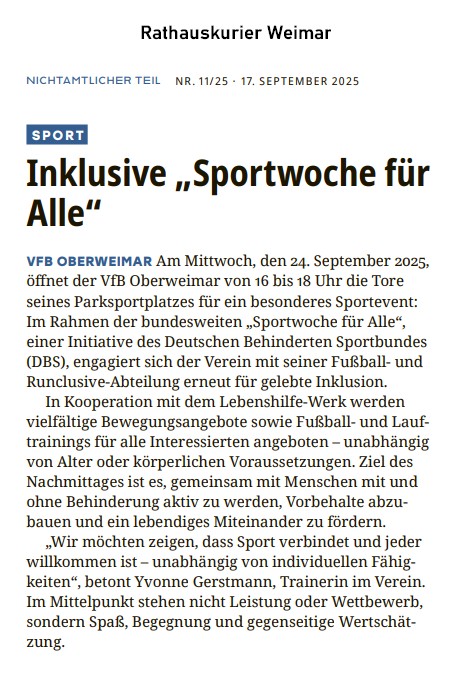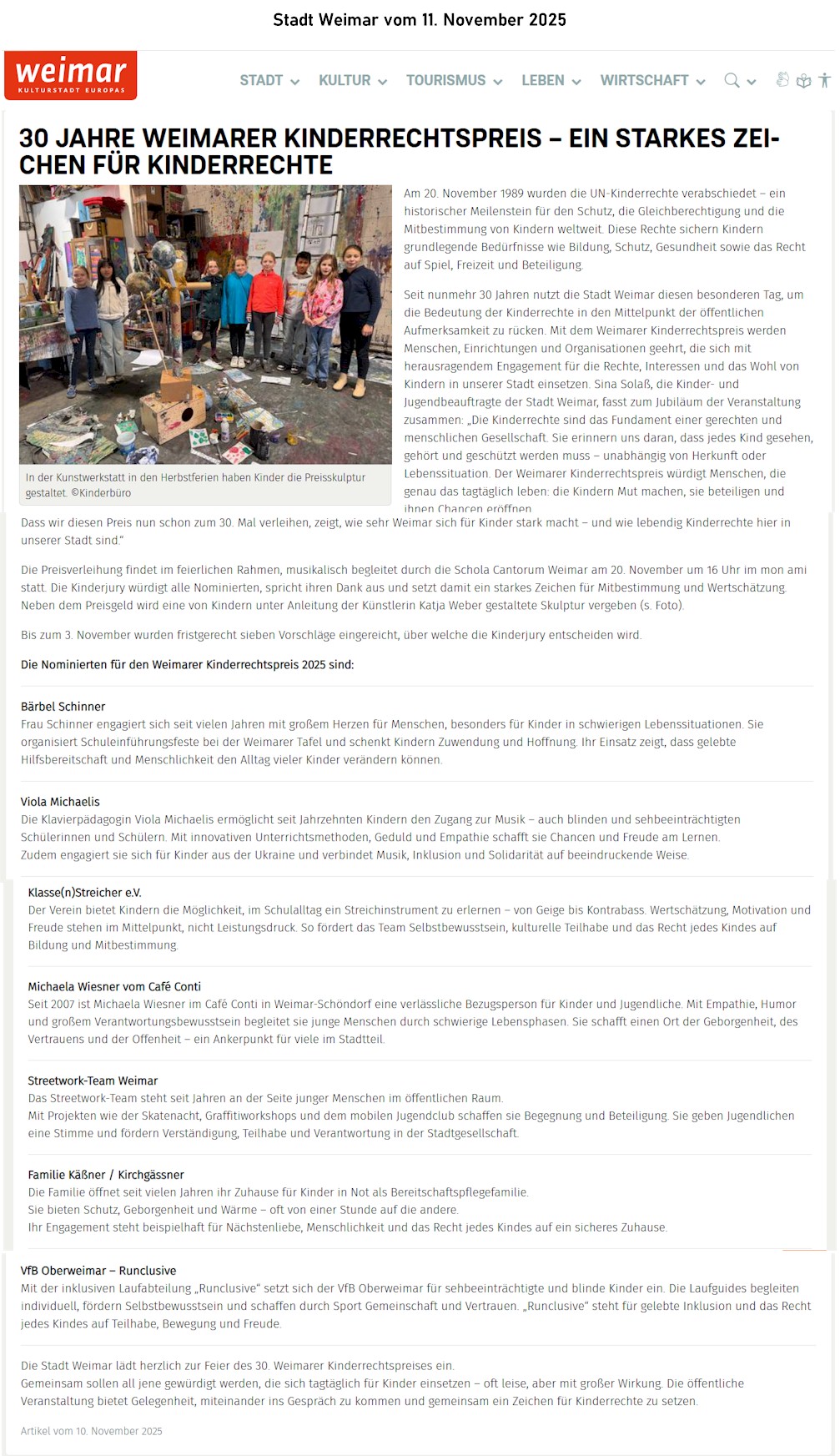 Runclusive für den Weimarer Kinderrechtspreis nominiert!14.11.2025 Wir freuen uns riesig: Unsere Abteilung Runclusive ist offiziell