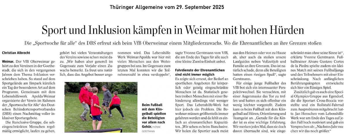 MDR Thüringen besucht die Runclusive-Abteilung des VfB Oberweimar30.07.2025 Am heutigen Tag war ein Team von MDR Thüringen beim VfB