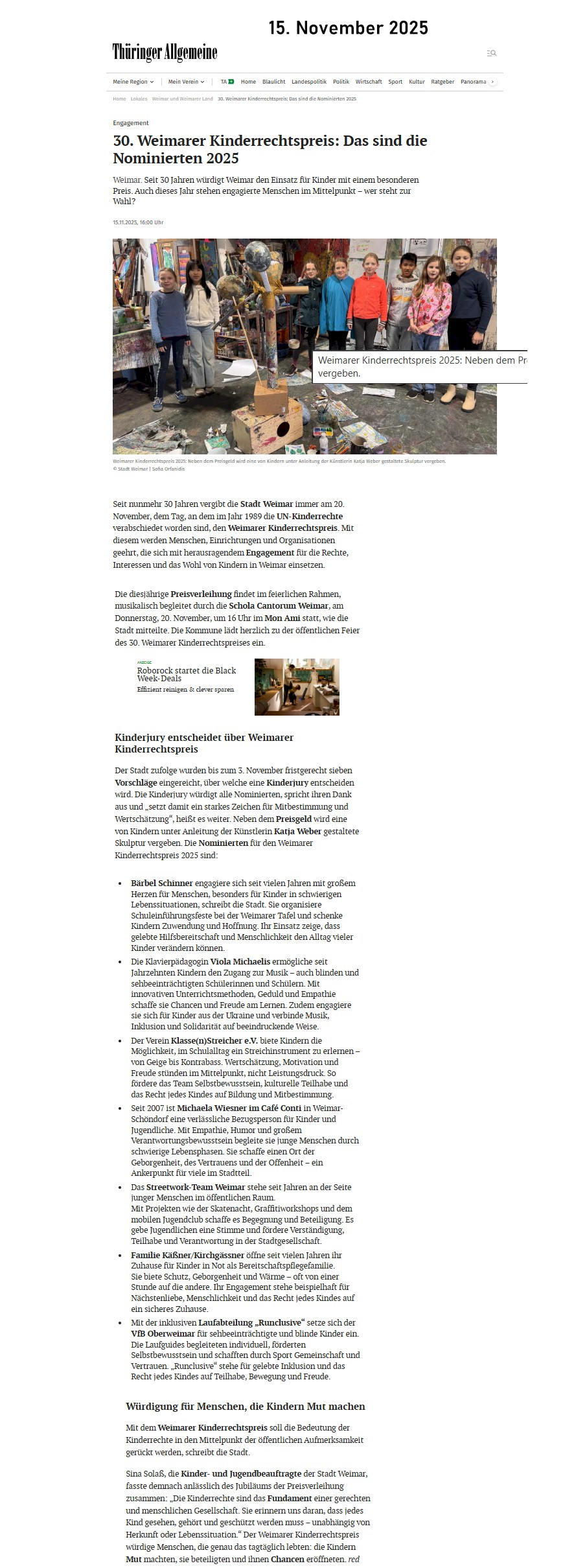 Verleihung des Kinderrechtspreises der Stadt Weimar21.11.2025 Gestern fand in Weimar die feierliche Verleihung des